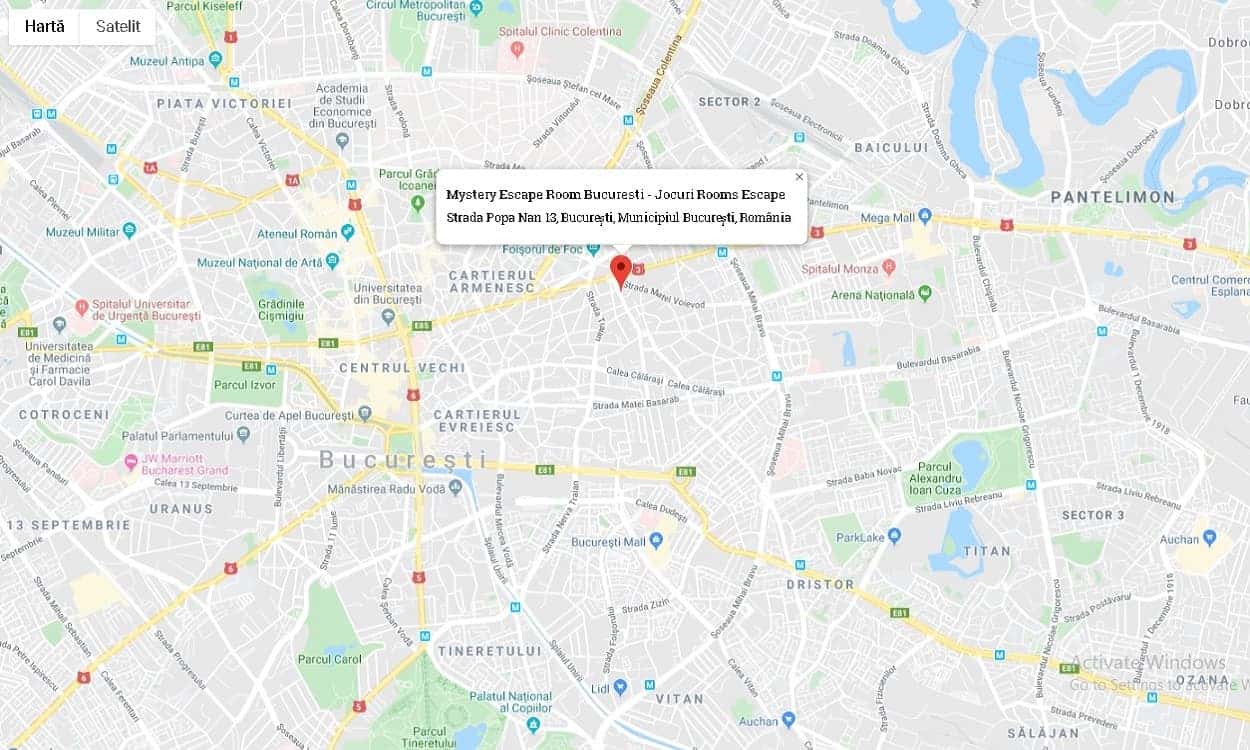 📍 Vezi locația pe Google Maps – caută casa enigmatică de pe Strada Popa Nan nr. 13, cu semn reprezentativ la interfon. Intră cu voie bună și descoperă secretele camerelor de escape room din București.